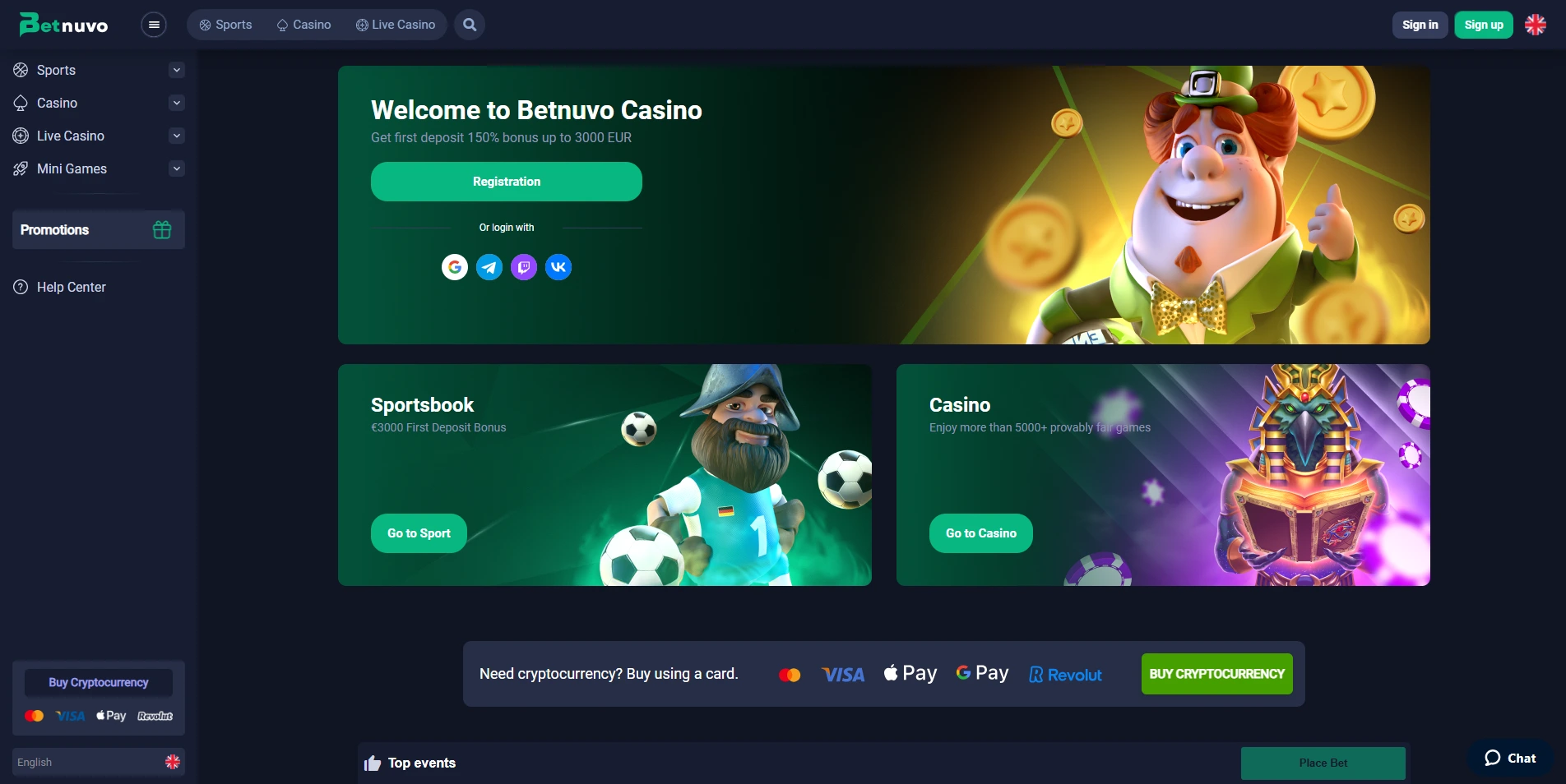 Now, let’s talk bonuses, this is where BetNuvo gets a bit flashy. They’re offering a hefty 150% first deposit bonus, up to €3,000. Not too shabby, right? Keep an eye out for a BetNuvo bonuses too, as they do sneak them in. They’re also crypto-friendly, with Bitcoin and Ethereum on the list, which is a nice modern touch.